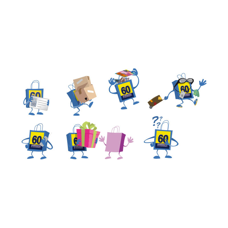 Création de pictos et visuels pour le site Internet 60 Millions de consommateurs. Création d’illustrations pour le magazine 60 Millions de consommateurs. Illustrations de courriers d’appels de fonds, mailings.
