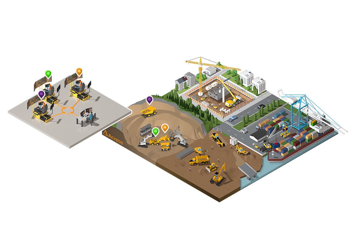 La société Acreos conçoit des simulateurs de conduite d'engins en 3d. Le projet confié par Acreos consistait à créer vue 3D rassemblant les 4 environnements dans lesquels évoluent ces engins.