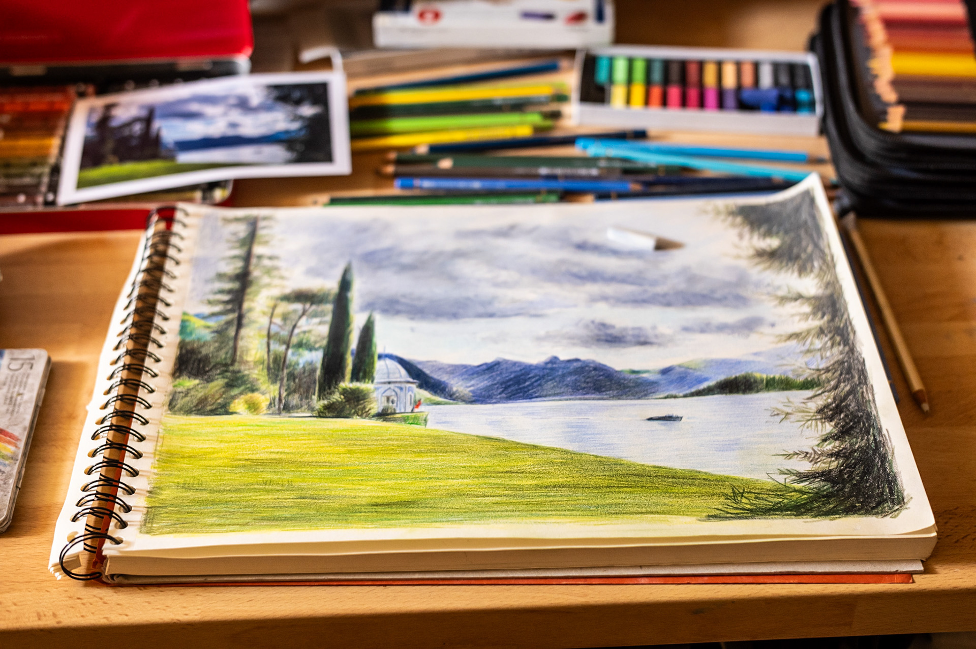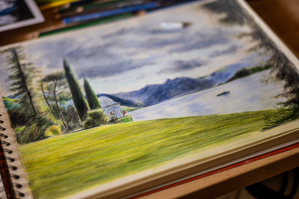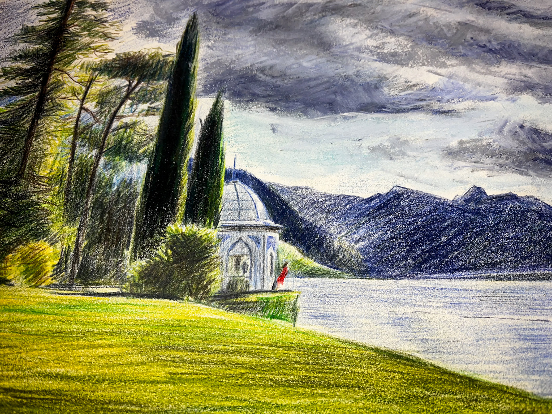 Illustration aux crayons de couleur et pastels sur papier.