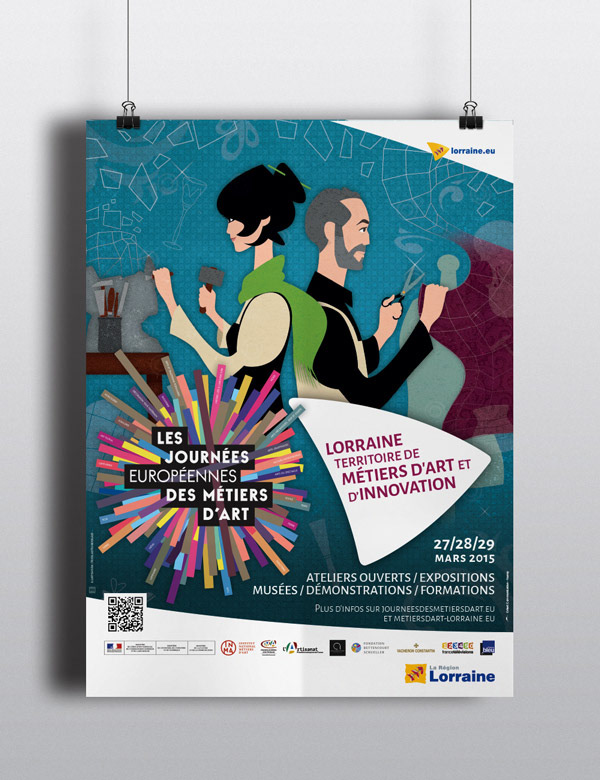 Création du visuel de l'édition 2015 des Journées Européennes des Métiers d'Art en Lorraine, parution presse locale et indoor. Commande réalisée pour l’agence Orient communication / Conseil Régional de Lorraine